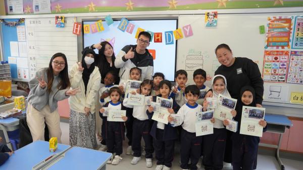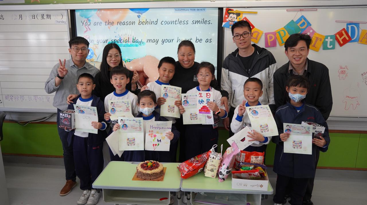 本校於每一個學段舉行一次慶生會,以加強學生對學校的歸屬感,建構校園關愛文化,亦希望增加師生間的聯繫,培養關愛融和氣氛。