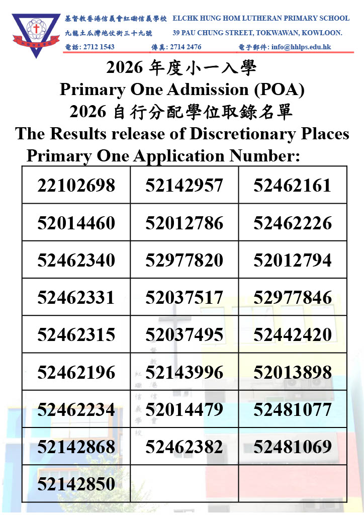 2026自行分配學位取錄名單 The Results release of Discretionary Places POA Number